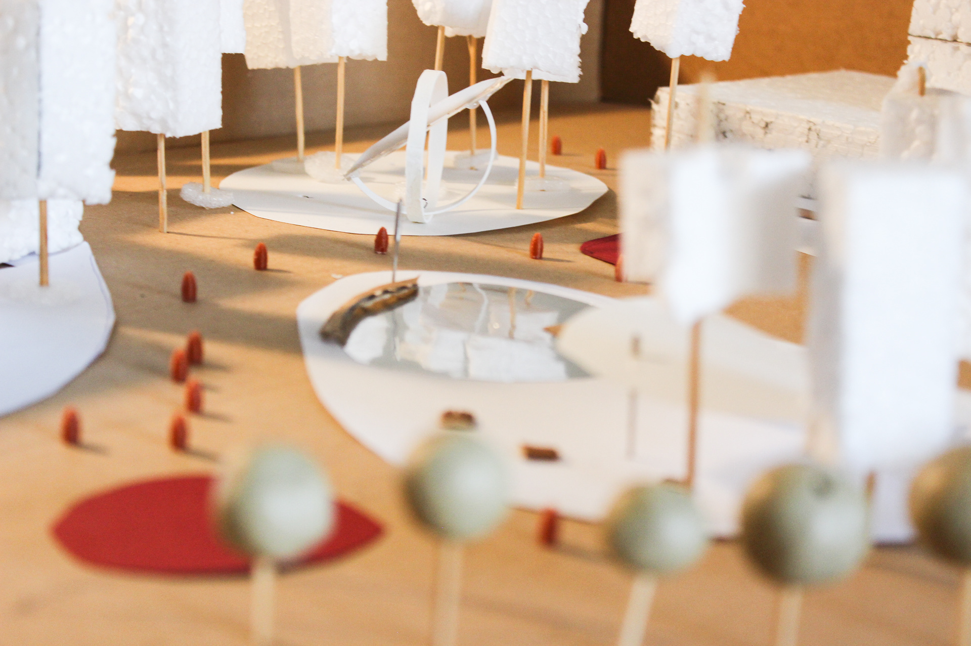 Лекційний простір. Курація лекційного простору повинна забезпечувати мультидисциплінарність заходів. Масштаб заходів може змінюватись завдяки можливості розширення до відкритого простору-терас перед павільйоном. Озеро дає можливість проводити дебати, розмови на вулиці,